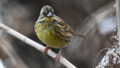 対岸の草むらからカワラヒワくん登場。この後水浴びをしてました。寒くないんだね。